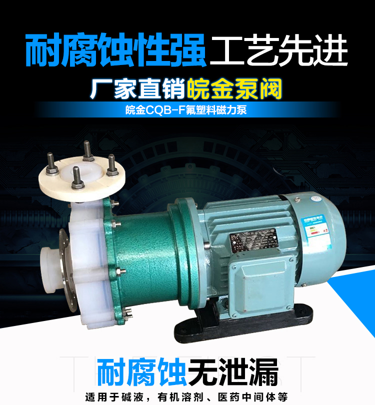 氟塑料磁力泵又稱其為氟塑料磁力離心泵、氟塑料磁力驅動泵、耐腐蝕磁力化工泵,CQB-F全塑磁力泵是我公司氟塑料磁力泵中的經典結構款型。氟塑料磁力泵另有:CQB-FA長支架型、CQB-F新升級型、IMD后拉式重型、微型磁力泵。