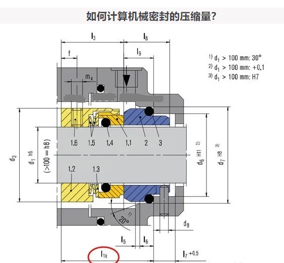 機械密封中尺寸關鍵尺寸L1K對應提主提到的壓縮量,保證軸向尺寸L1K即為達到了機械密封的安裝狀態,也就是我們追求的密封壓縮量佳值。
