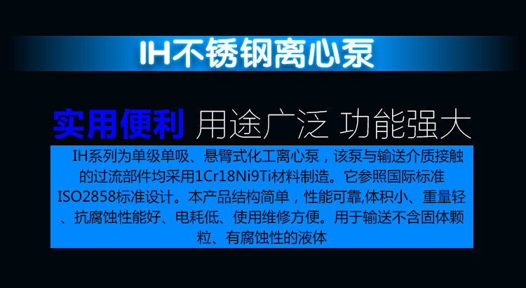 IH-J不銹鋼堿液離心泵具備耐腐蝕,高效節能、抗汽蝕性能強,適用溫度范圍廣。具有運行穩定、噪音振動低、可靠性高、壽命長等優點